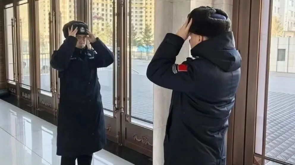 除夕一早,图们出入境边防检查站的警容镜前,35岁的刘宜达把警帽调整得端端正正,又扯了扯警服的下襟,便迈步推开了边检站的大门。