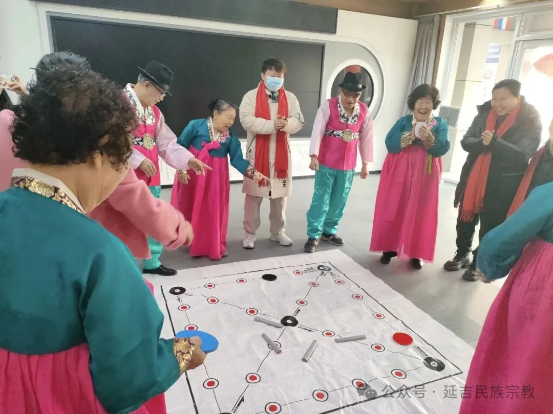 活动中,各族群众围坐交流、携手互动,共同参与画图、“尤茨”、投壶等传统民俗游戏,亲手制作品尝打糕、辣白菜、紫菜卷、拌饭等延边特色美食,同台开展乐器演奏、共写春联福字等才艺展示与新春祈福活动,沉浸式体验朝鲜族民族服饰的独特魅力,踊跃分享家乡故事、展示家乡风貌,在深度交融中领略边疆冬日盛景,感受延边民俗文化的独特韵味与延边人民的热忱豪迈。