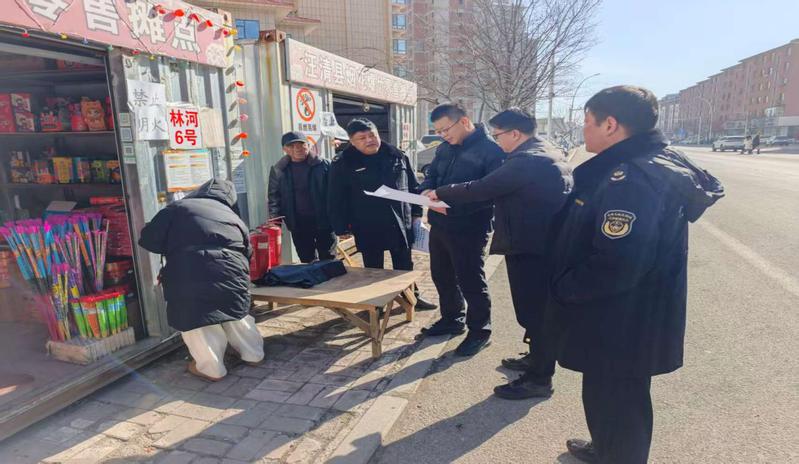 珲春市委副书记、市长、示范区党工委副书记、管委会主任张林国深入调研烟花爆竹安全管理工作。实地检查烟花爆竹零售店、临时零售摊位储存、销售、日常安全管理、进货台账、产品质量等情况,督促有关部门和经营单位按照省州和市委部署,严格落实“五个严禁”“三个务必”要求,从细从严做好烟花爆竹存储、运输、销售、燃放全链条安全监管和安全宣传工作。市安委办组织应急、公安、消防、城管等部门,对全市烟花爆竹批发、零售企业46个临时零售摊点开展全覆盖联合检查,督促经营主体严格落实安全责任,强化周边安全管控,制发烟花爆竹安全警示小视频、图文,加大宣传力度,并发动5个街道、9个乡镇引导群众遵守珲春市禁燃限燃管理规定,畅通举报渠道,坚决遏制烟花爆竹爆燃事故发生。