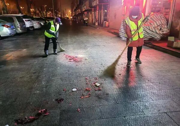 爆竹余温尚在,晨光未至,延吉的街头已响起扫帚划过路面的“唰唰”声。2026年大年初一凌晨3点,天池路西段的街巷里,两抹亮眼的“荧光绿”刺破了夜色的清冷——环卫工人王卓玲、包淑兰准时到岗,俯身清扫着除夕夜漫天烟火后留下的红色炮竹碎屑。