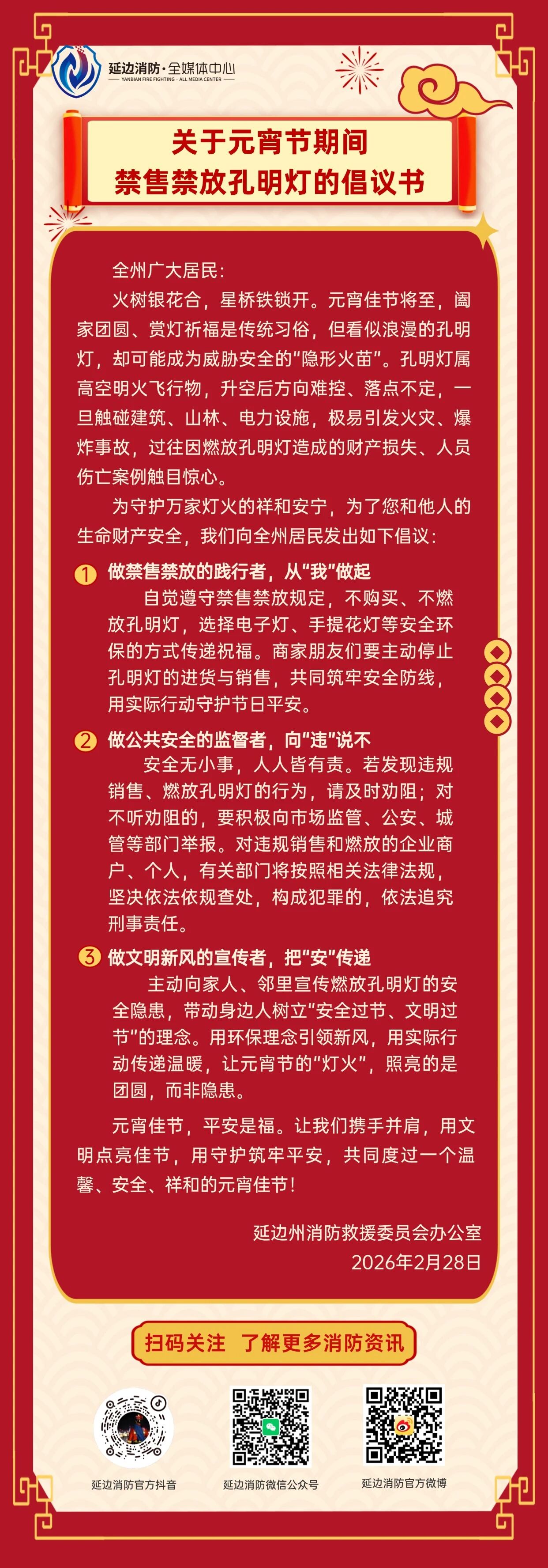 关于元宵节期间禁售禁放孔明灯的倡议书