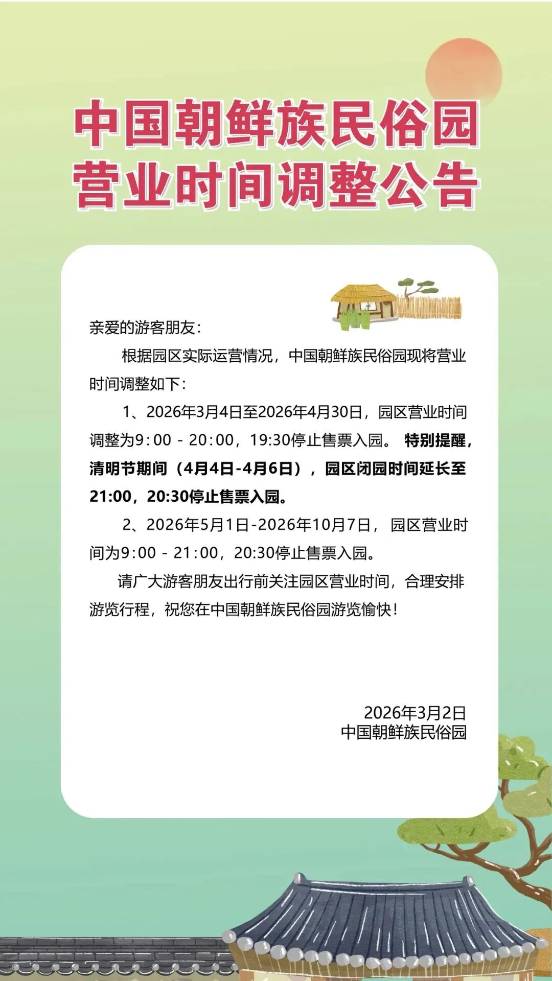 速看 |叮咚~民俗园营业时间已更新,请收好!