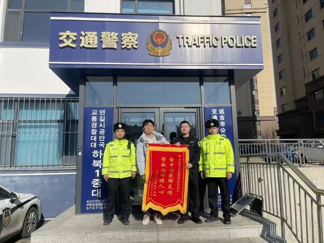 这份不计回报的护送,让焦急的家属满心感激,事后特意送来一面印有“警徽闪耀暖人心雪中送炭解危难”的锦旗,表达他们着对民警的谢意,也见证着延边街头的暖心瞬间。