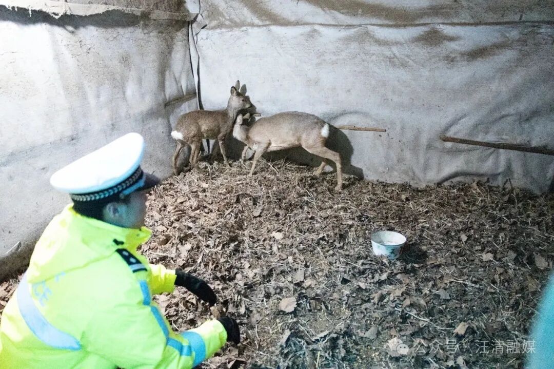 3月18日上午,吉林省汪清森林公安分局交通管理大队汪清中队大队民警在辖区路段开展日常执勤巡逻时,村民称自家后院突然出现两只狍子,看见人就东跑西撞,有一只一条腿疑似受伤。