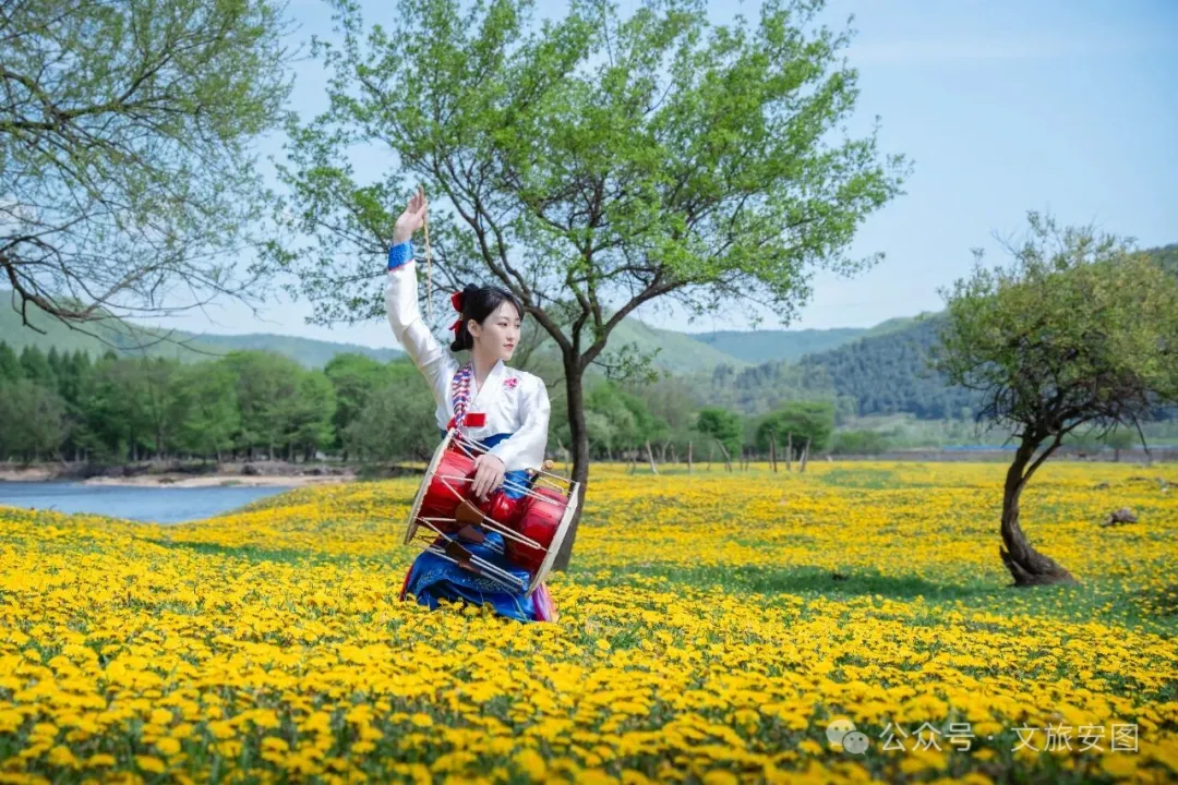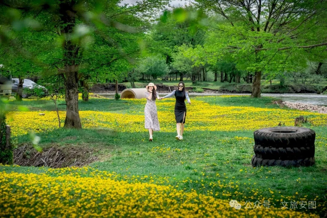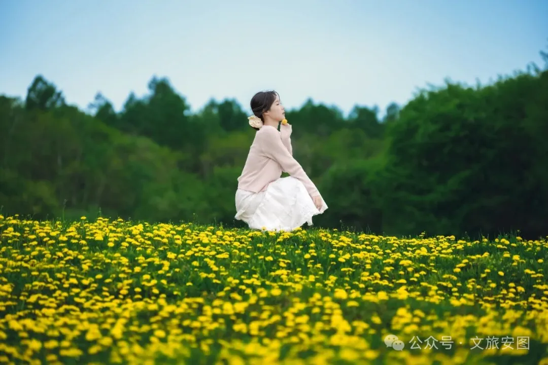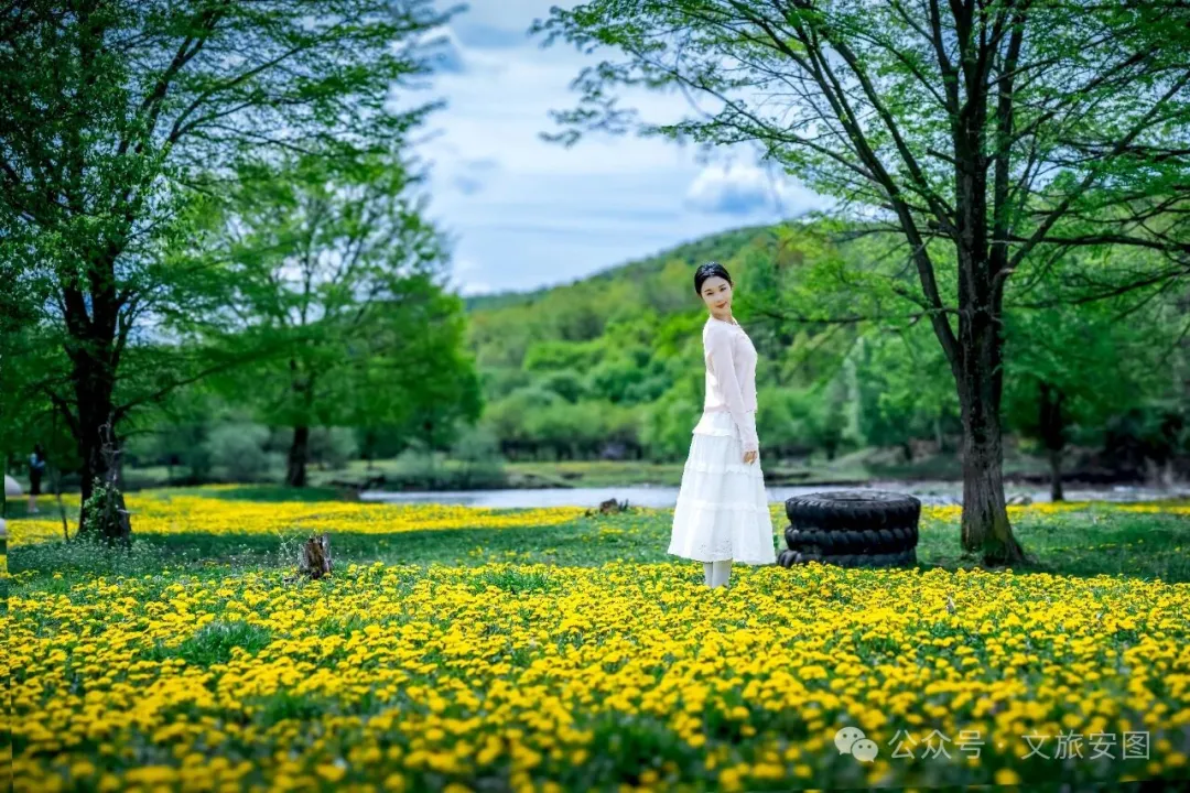不必刻意寻找风景。当你走进这里,便猝不及防地撞进一片无边无际的金黄里——那是一片蒲公英的花海,铺天盖地,浩浩荡荡,像大地打翻了春天的调色盘。