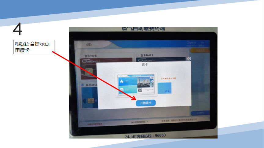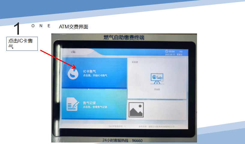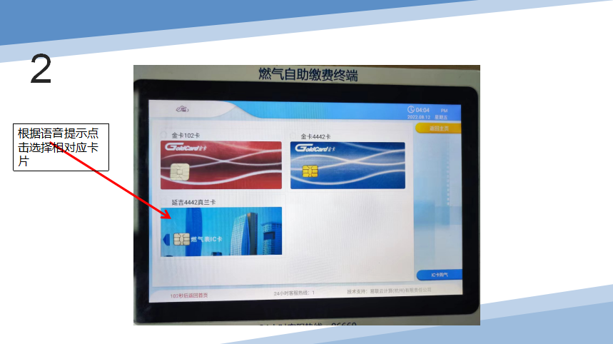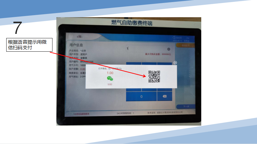 插入燃气卡——点击“IC卡购气”——选择卡类型——开始读卡——核对用户信息——输入购气金额——确认购买——选择微信支付——购气成功,最后打印燃气缴费凭条并取回燃气卡