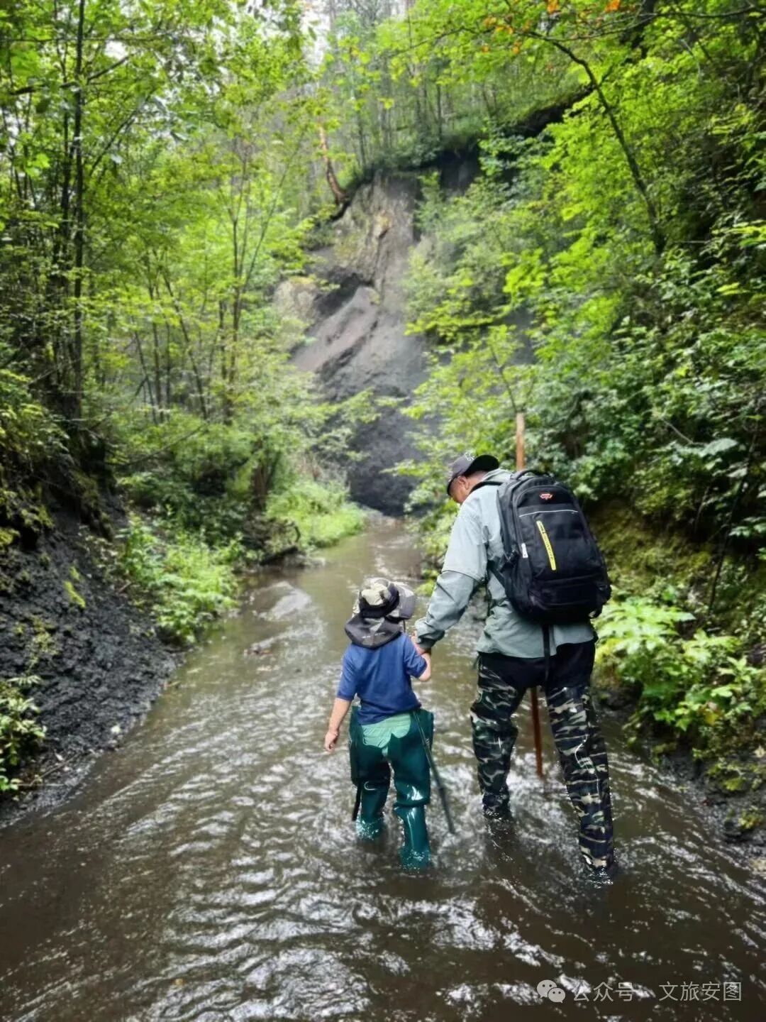 溯溪穿越:沿峡谷溪流前行,踏浅滩、听水声,沉浸式感受火山峡谷的野趣;