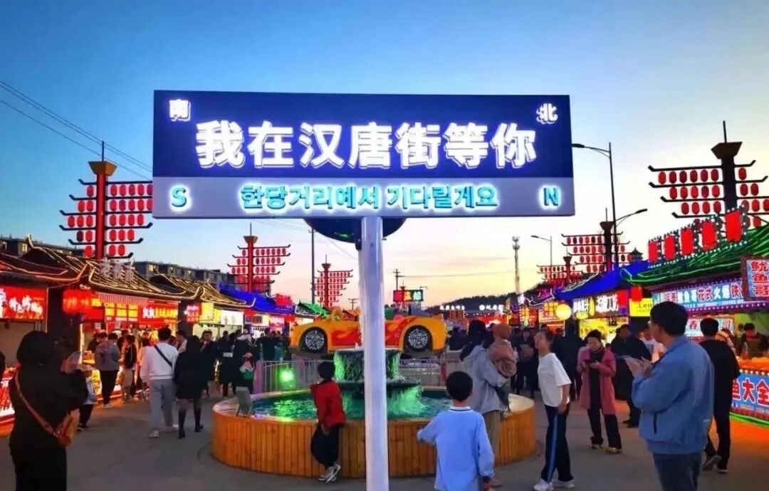 夜幕降临,华灯初上,汉唐街夜市人群熙攘。古色古香的仿唐建筑在灯光的映照下美轮美奂,美食区、文创区、演艺区各具特色。珲春大串的肉香、朝鲜族特色美食的香气、异域小吃的独特风味交织在一起,勾勒出动人的边城烟火气。市民与游客穿梭其间,一边品尝美食,一边欣赏民俗表演,沉浸式感受春日夜晚的热闹氛围。